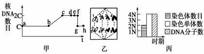 (2)图A中Ⅲ的数量关系对应于图B中的 ,图B中丙所示的细胞有 个染色体组。