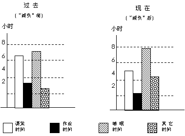 请根据下面所示内容,用英语写一篇短文,比较高中学生“减负”前后的有关情况。
