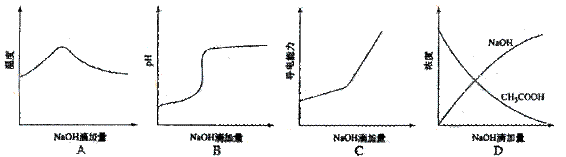 6. 将氢氧化钠稀溶液滴加到醋酸稀溶液中,下列各图示意混合溶液有关量或性质的变化趋势,其中错误的是 ( )