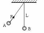 如图所示,A、B是质量相同的带等量同种电荷的小球, 悬线长为L,B球固定。平衡时,A球受的拉力为F,现其他条件不变,改变A的质量,使A球在距