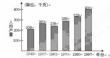 20.以下为新中国成立以来,我国粮食人均产量变化图。其中引起1949年到1962年粮食人均产量变化的主要原因是![]()