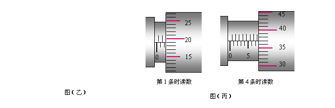 (1)分划板的中心刻线分别对准第1条和第4条亮纹的中心时,手轮上的读数如图(丙)所示,则对准第1条时读数x1=_______mm、对准第4条时读数x2=_______mm