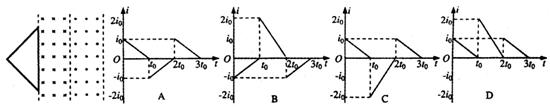 的等腰直角三角形导线框,从图示位置以水平向右的恒定速度穿越该场区,若以线框中逆时针方向为电流正方向,则下列图线中能正确描述该过程内线框中感应电流i与时间t的关系的是: