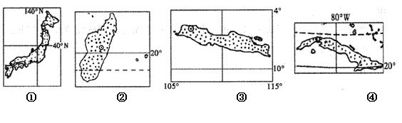 12.当北京地区座北朝南的房屋内,正午阳光照射面积最大时,下图中各岛正午太阳高度由大到小排列正确的是: