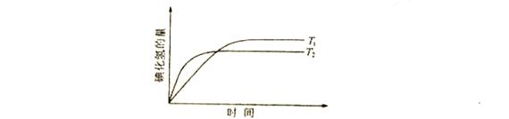 2HI(g),在温度T1和T2时,产物的量与时间的关系如下图所示,符合图象的正确的判断是( )