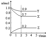 16.一定温度下,在2 L的密闭容器中,X、Y、Z三种气体的物质的量随时间变化的曲线如下图所示:( )