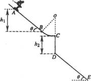,台阶底端与倾角为370斜坡DE相连.运动员连同滑雪装备总质最为80kg,从A点由静止滑下通过C点后飞落到DE上(不计空气阻力和轨道的摩擦阻力,g取10m/s2,sin370=0.6,cos370=0.8).求:
