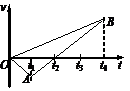 在一条宽马路上,在同一点A、B两车同时开始运动,取开始运动时刻为计时零点,它们的v-t图像如图,这段时间内的情景是---------------------(