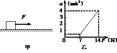 18.如图甲所示,物体原来静止在水平面上,用一水平力F拉物体,在F从0开始逐渐增大的过程中,物体先静止后又做变加速运动,其加速度a随外力F变化的图像如图乙所示.根据图乙中所标出的数据可计算出---------------------------------------------------------------------------------( )