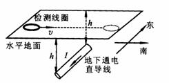 如图所示,在水平地面下有一条沿东西方向铺设的水平直导线,导线中通有自东向西稳定、强大的直流电流。现用一闭合的检测线圈(线圈中串有灵敏的检流计,图中未画出)检测此通电直导线的位置,若不考虑地磁场的影响,在检测线圈位于水平面内,从距直导线很远处由北向南沿水平地面通过导线的止方并移至距导线很远处的过程中,俯视检测线圈,其中的感应电流的方向是