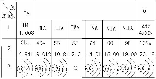 (2)与氯原子的最外层电子数相同的原子是 (填元素符号),周期表中Z元素的原子最外层电子数为 个。
