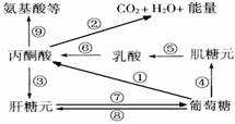 D.糖尿病患者体内的①④⑧⑨过程都不能正常完成
