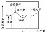 D.从图中可看出,血糖浓度的相对稳定是分泌物甲和分泌物乙协同作用的结果