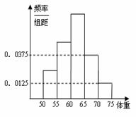 为了了解高三学生的身体状况.抽取了部分男生的体重,将所得的数据整理后,画出了频率分布直方图(如下左图),已知图中从左到右的前3个小组的频率比为