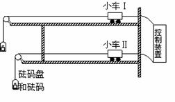 在“探究加速度与物体质量、物体受力的关系”实验中,某小组设计了如图所示的实验装置。图中上下两层水平轨道表面光滑,两小车前端系上细线,细线跨过定滑轮并挂上砝码盘,两小车尾部细线连到控制装置上,实验时通过控制装置使小车同时开始运动,然后同时停止。