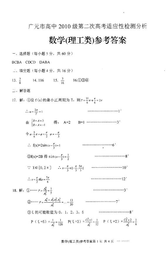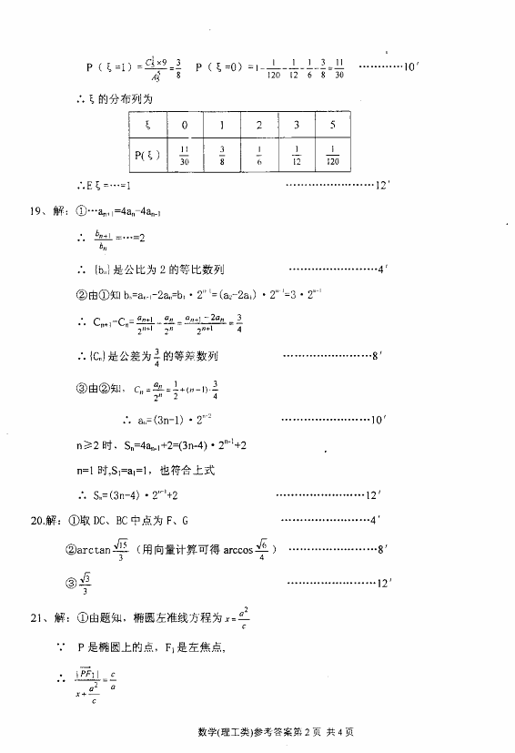 3. ⑴(理)依题意,甲答对试题数ξ的概率分布如下:
