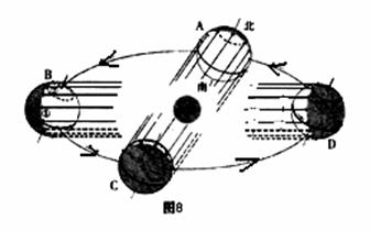 (1)地球由D到A, 地球表面极昼现象的变化范围是 。