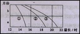 C、三地昼长变化率在a月相等 D、三地中③地昼长变化最大