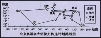 (3)搭载北京奥运圣火的专机从城市③飞往下一站城市,其最短航线的飞行方向是
