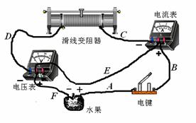(1)将铜片、锌片插入水果中,能制成“水果电池”。某同学采用如图所示的实物图测量水果电池的电动势(E)和内阻(r)。