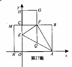 019]如图所示,将矩形OABC沿AE折叠,使点O恰好落在BC上F处,以CF为边作正方形CFGH,延长BC至M,使CM=|CF-EO|,再以CM、CO为边作矩形CMNO