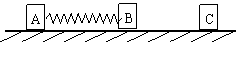 36.(18分)光滑的水平面上,用弹簧相连的质量均为2kg的A、B两物块都以V0=6m/s的速度向右运动,弹簧处于原长,质量为4kg的物块C静止在前方,如图所示。B与C碰撞后二者粘在一起运动,