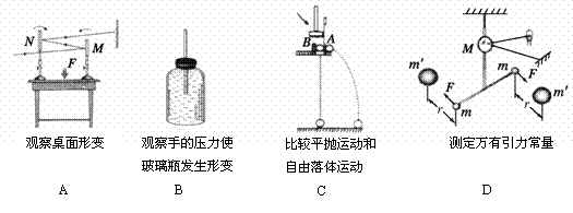 (1)在物理实验中,把一些微小量的变化进行放大,是常用的物理思想方法。如图所示的四个实验,运用此思想方法的是 。(填相应符号)