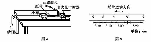 ① 图a所示为实验装置图。图b为某次实验得到的一段纸带,计数点A、B、C、D、E间的时间间隔为0.1s,根据纸带可求出小车的加速度大小为 m/s2。(结果保留两位有效数字)