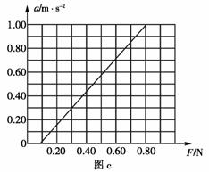 ②保持小车质量不变,改变砂和砂桶质量,进行多次测量。根据实验数据做出了加速度a随拉力F的变化图线,如图c所示。图中直线没有通过原点,其主要原因是