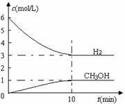 测得H2和CH3OH(g)的浓度随时间变化如下图所示。下列说法不正确的是