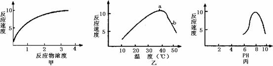 22.下图中甲、乙、丙三图依次表示酶浓度一定时,反应速度和反应物浓度、温度、pH的关系,下列据图分析中错误的是