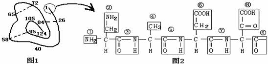 下面是某蛋白质的肽链结构示意图(图1,其中数字为氨基酸序号)及部分肽链放大图(图2),请据图判断下列叙述中正确的是![]()
