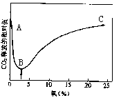 45. (10分) 下图表示大气中氧的含量对植物组织内产生CO2的影响,请根据图回答: