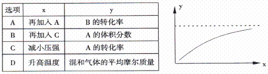 11.在密闭容器中通入A、B两种气体,一定条件下发生反应;△H<O,达平衡后,改变一个条件(x),下列物理量(y)一定符合图中曲线的是(   )
