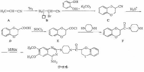 32、(16分)多沙唑嗪盐酸盐是一种用于治疗高血压的药物。多沙唑嗪的合成路线如下:![]()