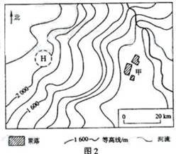 图2中。H地恰与某高压天气系统中心吻合,该天气系统以每天约200千米的速度东移。据此完成6-8题。