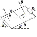 如图所示,平行金属导轨与水平面成θ角,导轨与固定电阻R1和R2相连,匀强磁场垂直穿过导轨平面.有一导体棒ab,质量为m,导体棒的电阻与固定电阻R1和R2的阻值均相等,与导轨之间的动摩擦因数为μ,导体棒ab沿导轨向上滑动,当上滑的速度为v时,受到安培力的大小为F.此时( )