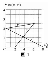 16(10分).如图4所示为三物体a、b、c分别在0-6s和0-8s内物体的速度随时间变化图象,求a、b、c三物体的加速度。