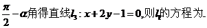 沿逆时针方向旋转α角得直线l2,l2的纵截距为-2,l2绕P沿逆时针方向旋转![]()