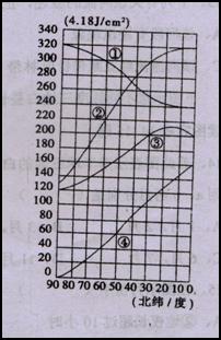 读“北半球太阳辐射的纬度分布图”,分析回答6~8题。
