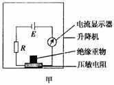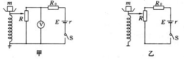 17.如图所示,图甲是我市某中学在研究性学习活动中,吴丽同学自制的电子秤原理示意图.目的是利用理想电压表的示数指示物体的质量.托盘与电阻可忽略的金属弹簧相连,托盘与弹簧的质量均不计.滑动变阻器的滑动端与弹簧上端连接,当托盘中没有放物体时,刀片恰好指在变阻器R的最上端,此时电压表示数为零。设变阻器总电阻为R,总长度为L,电源电动势为E,内阻为r,限流电阻阻值为R0,弹簧劲度系数为k,不计一切摩擦和其他阻力.