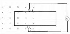 如图所示,均匀的金属长方形线框从匀强磁场中以匀速V拉出,它的两边固定有带金属滑轮的导电机构,金属框向右运动时金属滑轮总是与两边良好接触,一理想电压表跨接在PQ两导电机构上,当金属框向右匀速拉出的过程中,电压表的读数:(金属框的长为a,宽为b,磁感应强度为B)