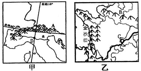 (1)说出甲乙两图的在地区旅游资源的共同特点。并分析乙图所在地区旅游业不如甲图所在地区发达的原因?(10分)