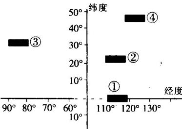 读图,阴影部分分别表示四个地区分布的四种农作物。完成6-7题。