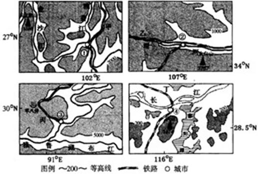 9.甲、乙、丙、丁分别是通过四个城市的铁路线。下列关于四条铁路线的叙述正确的是( )