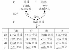 F1全为黄圆。表明粒色中黄色是显性,粒形中圆粒是显性。