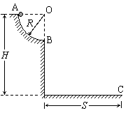 光滑轨道,半径为R,OB沿竖直方向,圆弧轨道上端A点距地面高度为H,质量为m的小球从A点由静止释放,最后落在地面C点处,不计空气阻力。求: