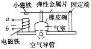 如图所示是一种利用电磁原理制成的充气泵的结构示意图.其工作原理类似打点计时器,当电流从电磁铁的接线柱 a流入,吸引小磁铁向下运动时,以下选项中正确的是( )