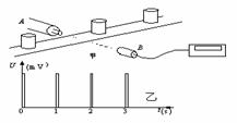.(2008高安二中高三双基测试卷物理试题六)利用光敏电阻制作的光传感器,记录了传送带上工件的输送情况,如图甲所示为某工厂成品包装车间的光传感记录器,光传感器B能接收到发光元件A发出的光,每当工件挡住A发出的光时,光传感器输出一个电信号,并在屏幕上显示出电信号与时间的关系,如图乙所示,若传送带始终匀速运动,每两个工件间的距离为0.2 m,则下述说法正确的是( )