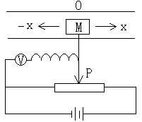 (2003上海考题)演示位移传感器的工作原理如右图示,物体M在导轨上平移时,带动滑动变阻器的金属滑杆p,通过电压表显示的数据,来反映物体位移的大小x。假设电压表是理想的,则下列说法正确的是 ( )